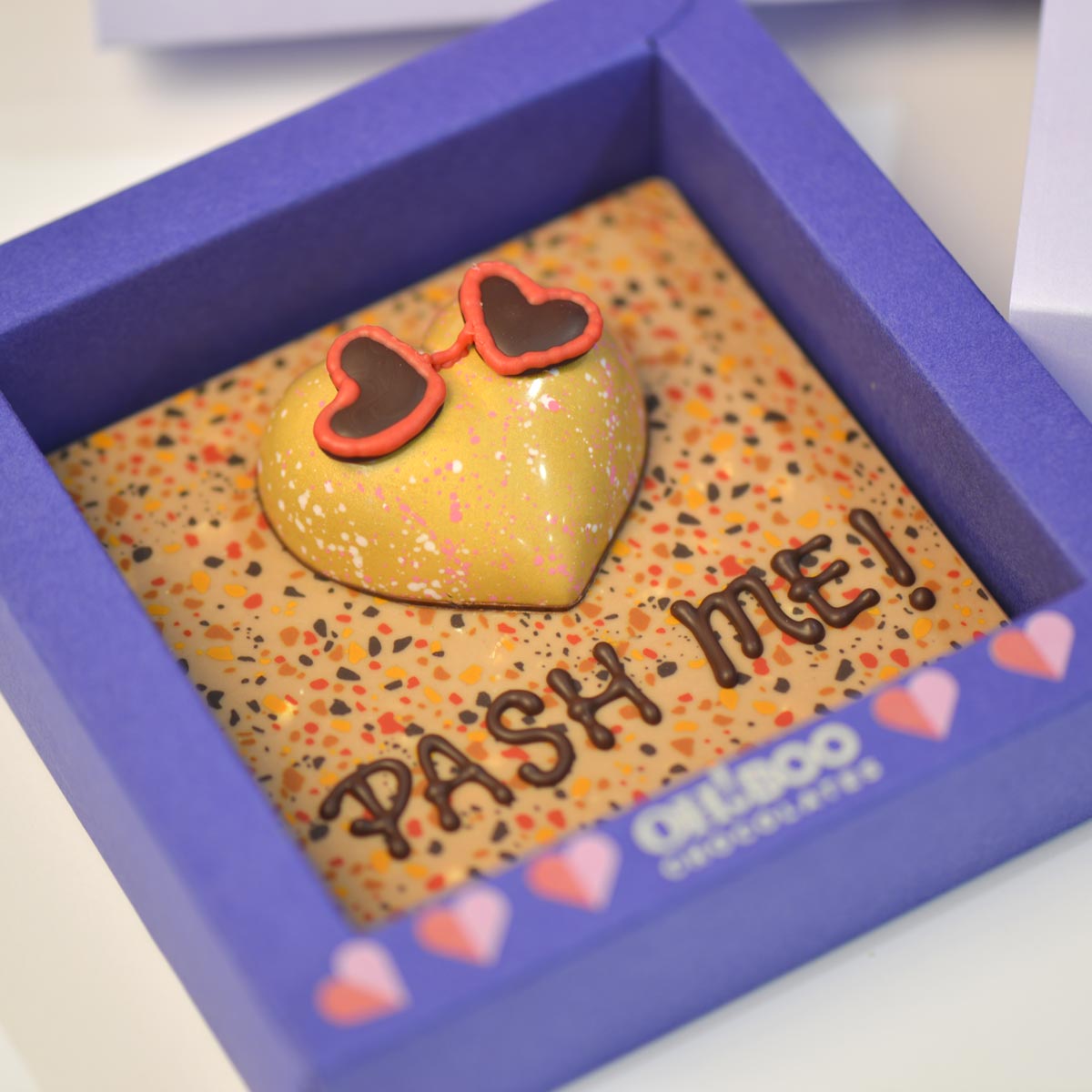 Say it with chocolate. The Pash Me Box is a bold little love note made of smooth, handcrafted chocolate and just the right amount of attitude. Featuring a playful heart design and a message that gets straight to the point, it’s the perfect gift for Valentine’s Day, Galentine’s, or anyone you’d happily steal a kiss from.